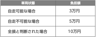 - ※車両補償については全損時は免責上限5万円(非課税)、全損時以外の損傷については免責額を上限とした修理代実費のご請求となります。