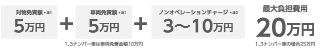 - ※3ナンバー、1ナンバー車につきまして車輌免責金額が10万円(税抜)となります。
